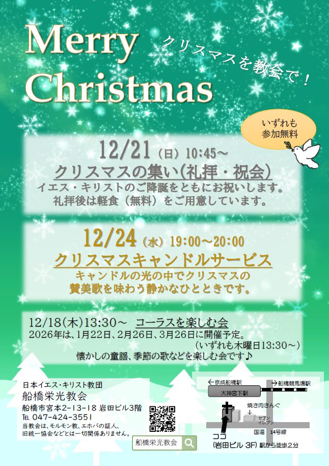 今年のクリスマスを教会で過ごしてみませんか。初めての方も歓迎いたします。
